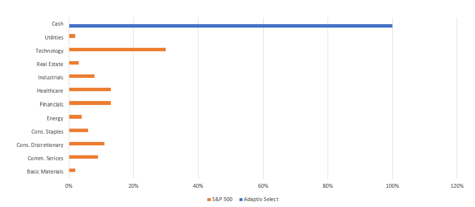 Broad market indices had a wild month. After moving into cash and short-term Treasury bills in mid-March, the Adaptiv Select ETF was able to avoid this volatility and post a 0.33% gain for the month of April:1